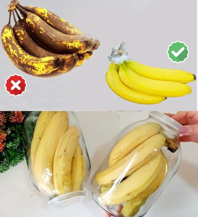 Łodygi bananów wydzielają etylen, który przyspiesza proces dojrzewania. Ciasne owinięcie łodyg folią spożywczą może uwięzić gaz i spowolnić dojrzewanie. Aby uzyskać najlepsze rezultaty, owiń łodygi dopiero po wyjęciu banana.
