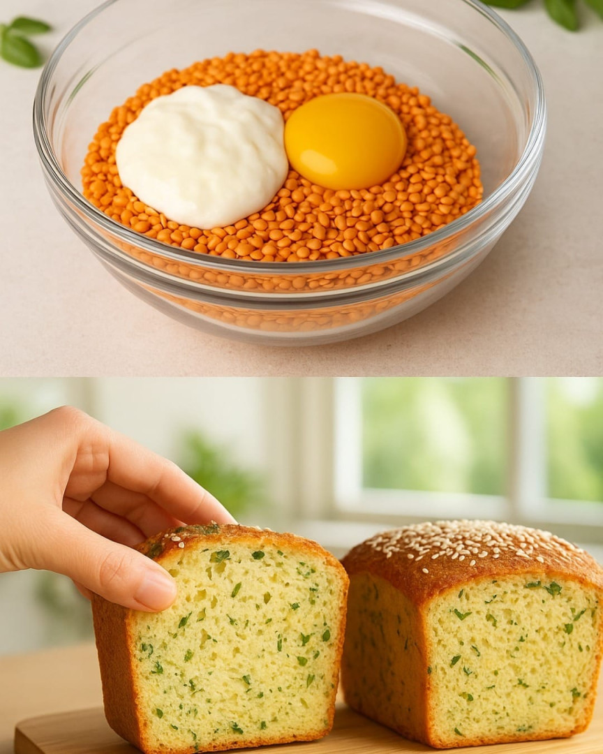 Składniki na bezmączny, bogaty w białko chleb z soczewicy koralowej i ziół