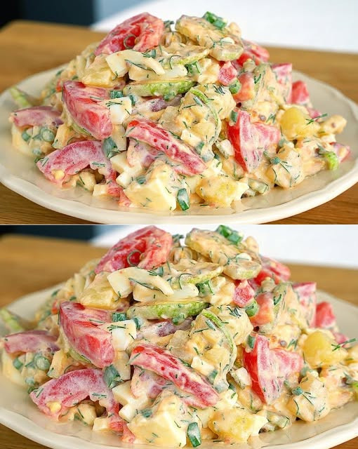 Ta ciepła sałatka warzywna z jajkami to pocieszające i pyszne danie, które jest idealne na każdą porę dnia. Łącząc delikatne ziemniaki, smażoną cukinię, świeże pomidory i jajka na twardo, ta sałatka jest zwieńczona kremowym dressingiem z jogurtu, majonezu i musztardy. To zachwycająca mieszanka faktur i smaków z dodatkiem świeżości zielonej cebulki i pietruszki. Zacznijmy od tego łatwego i satysfakcjonującego przepisu, który jest zarówno odżywczy, jak i wszechstronny!