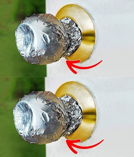 Kiedy wychodzisz z domu lub kładziesz się spać, poświęć chwilę na zakrycie zewnętrznej klamki drzwi folią aluminiową. Upewnij się tylko, że dobrze przylega i nie jest zbyt pomarszczona. Genialne? Folia działa jak tajny agent, dając znać, czy ktoś próbował się włamać.