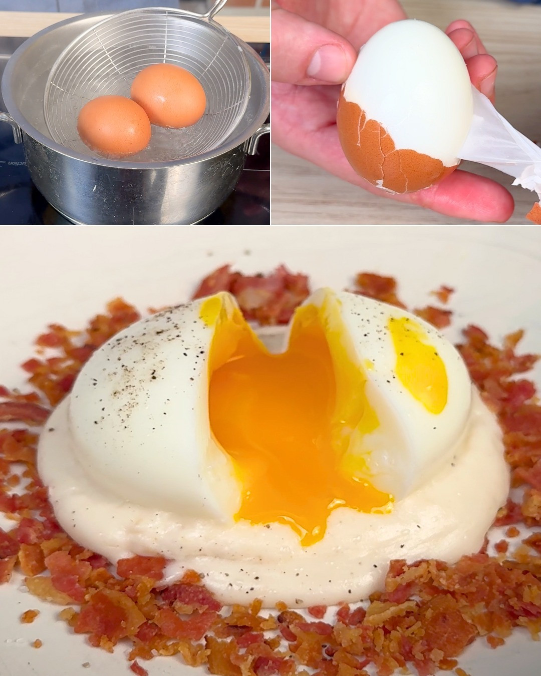 Gotowanie jajek: Kiedy woda się zagotuje, ostrożnie włóż jajka do wody za pomocą łyżki lub chochli. Smaż jajka przez około 6–7 minut, aż żółtko będzie miękkie i kremowe.