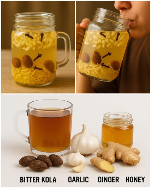 Zetrzyj lub zmiażdż orzeszki kola (gorzkiej koli), czosnek i imbir.