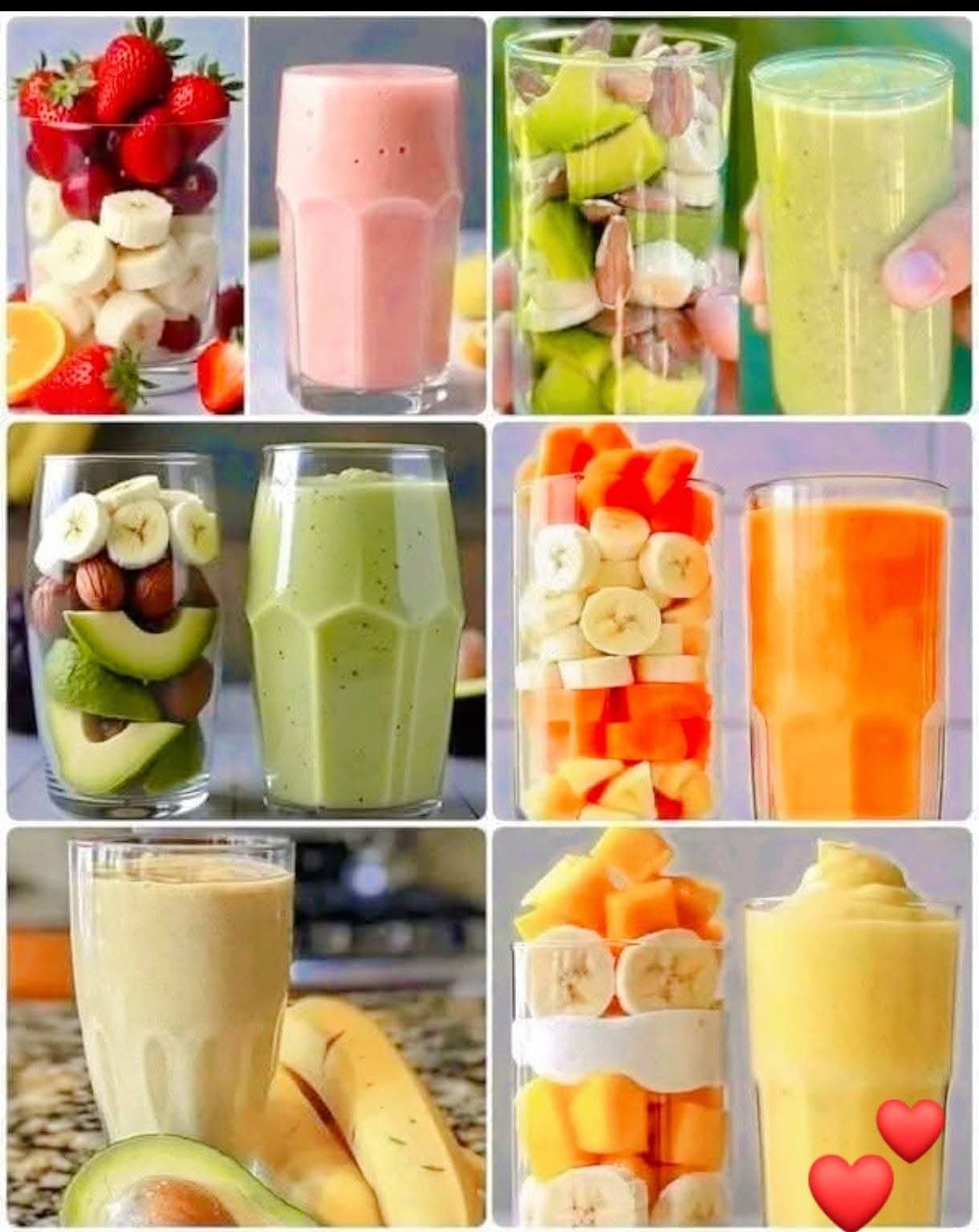 1. Koktajl truskawkowo-bananowy 1 szklanka truskawek 1 banan ½ szklanki soku pomarańczowego Zmiksuj i delektuj się! — 2. Koktajl migdałowo-awokado 1 banan ½ awokado Garść migdałów 1 szklanka mleka migdałowego — 3. Koktajl awokado z orzechami