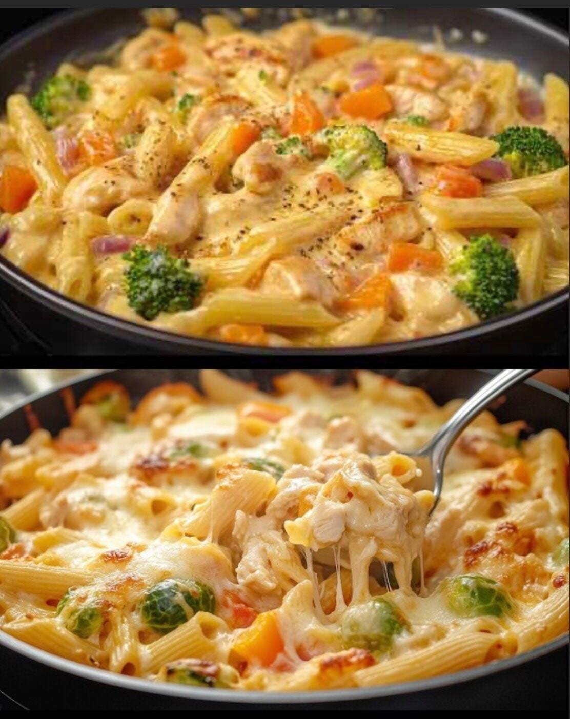 Kurczak z makaronem w kremowym sosie parmezanowym