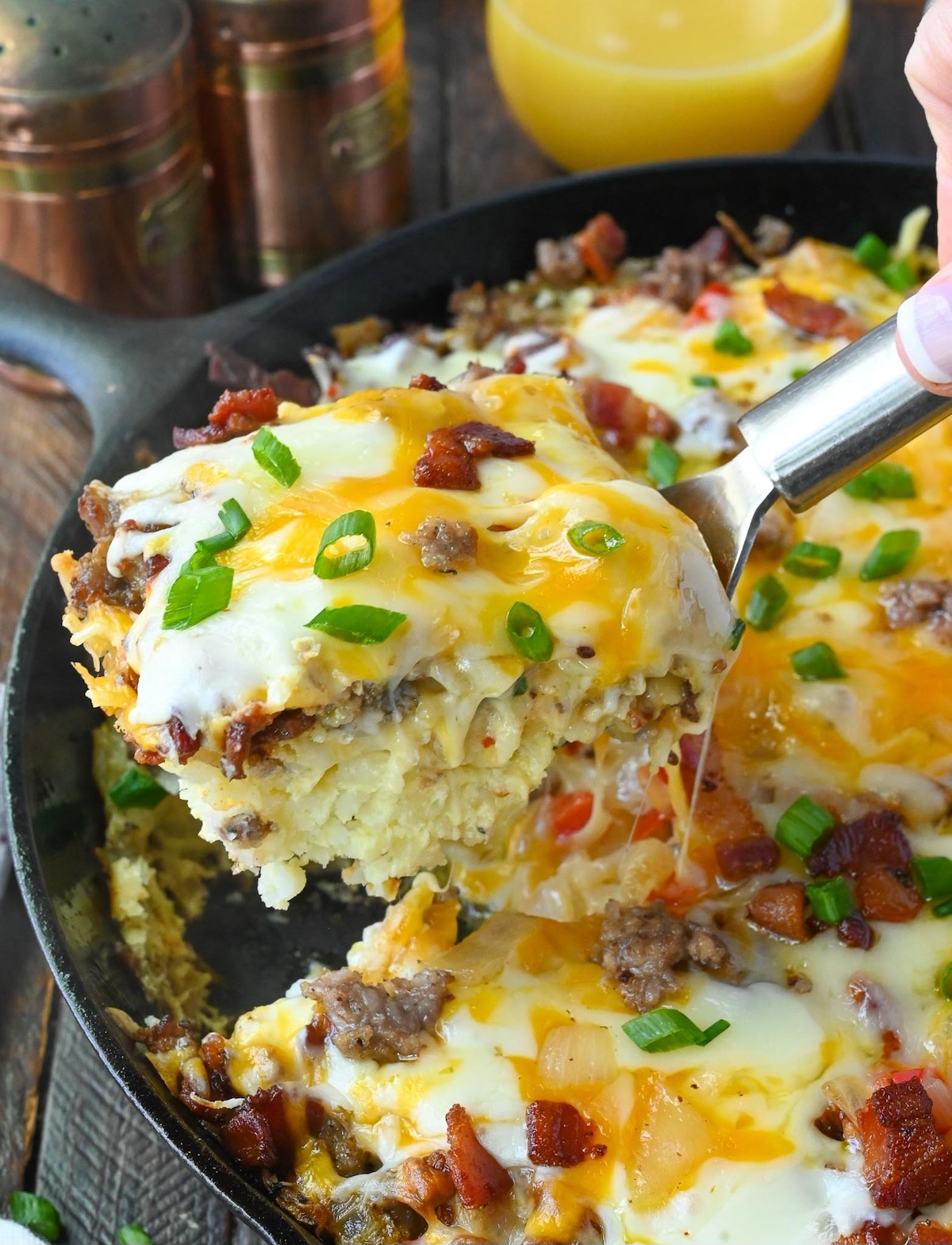 8 uncji (około 1 szklanki) ugotowanej kiełbasy lub posiekanego boczku