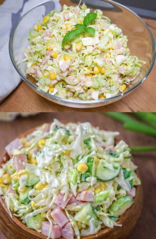 Ta luksusowa sałatka z kapusty jest tak smaczna i prosta, że będziesz ją robić całkiem często. Idealna jako szybka kolacja, lekki obiad lub świetna dodatek do mięsa. Dzięki połączeniu chrupiącej kapusty, szynki, ogórków i kukurydzy powstaje orzeźwiająca i jednocześnie sycąca sałatka, która przypadnie do gustu zarówno dzieciom, jak i dorosłym.