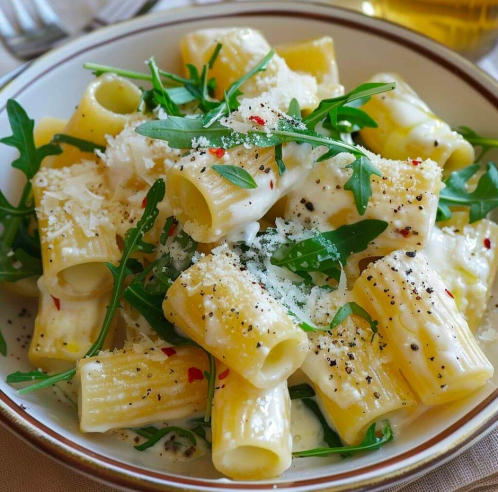 Makaron z cytryną i ricottą z rukolą