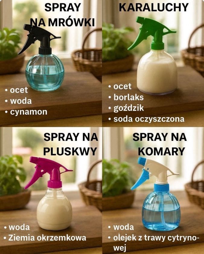 Poniżej znajdziesz cztery przepisy na domowe spraye: przeciw mrówkom, karaluchom, pluskwom i komarom. Każdy z nich wykorzystuje naturalne właściwości produktów, które masz już w domu lub kupisz w najbliższym sklepie.