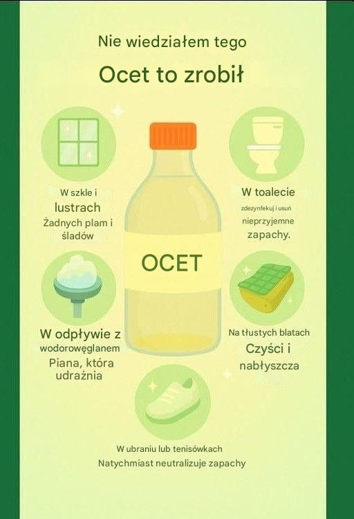 Ocet to jeden z tych produktów, którego nigdy nie brakuje w domu. Oprócz zastosowania w kuchni, ten przezroczysty, łatwo dostępny i niedrogi płyn może stać się Twoim najlepszym narzędziem do utrzymania domu w czystości, bez nieprzyjemnych zapachów i bez konieczności wydawania pieniędzy na środki chemiczne.