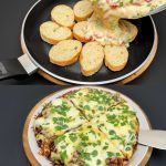 W naczyniu żaroodpornym ułóż warstwami bakłażan, a na wierzch nałóż pomidorową mieszankę. Posyp serem feta lub parmezanem, jeśli używasz. Wstaw naczynie do nagrzanego piekarnika (180°C) na 10 minut, aż ser się roztopi i całość lekko się zapiecze.