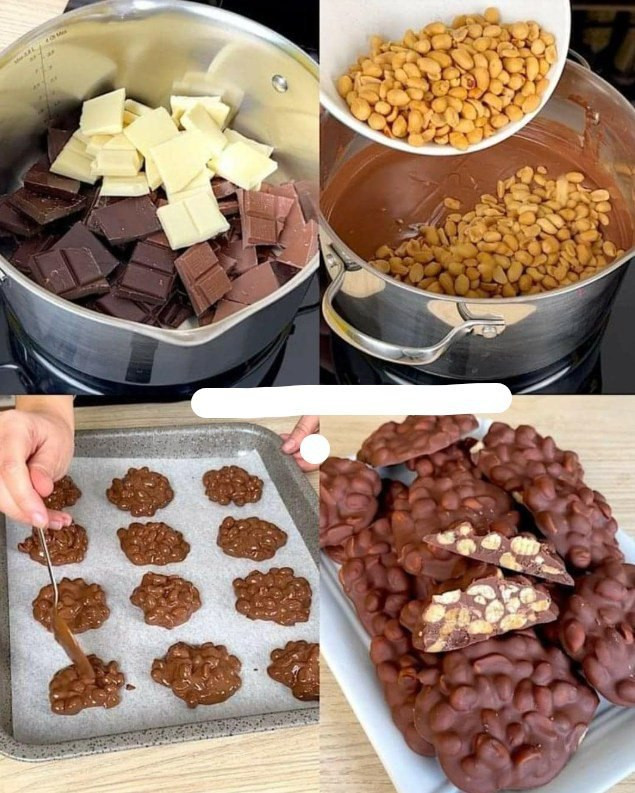 Chłodzenie: Po wymieszaniu orzeszków z czekoladą, przełóż je na papier do pieczenia i wstaw do lodówki na co najmniej 30 minut, aby czekolada stwardniała.