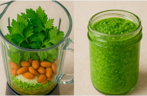 Pesto z liści selera to oryginalna i zrównoważona alternatywa dla klasycznego pesto genueńskiego. Idealne do ograniczania odpadów w kuchni, wzbogaca często wyrzucaną część selera, przekształcając go w smaczny i wszechstronny krem. Smaczny pomysł, łatwy do wykonania i gotowy w kilka minut.