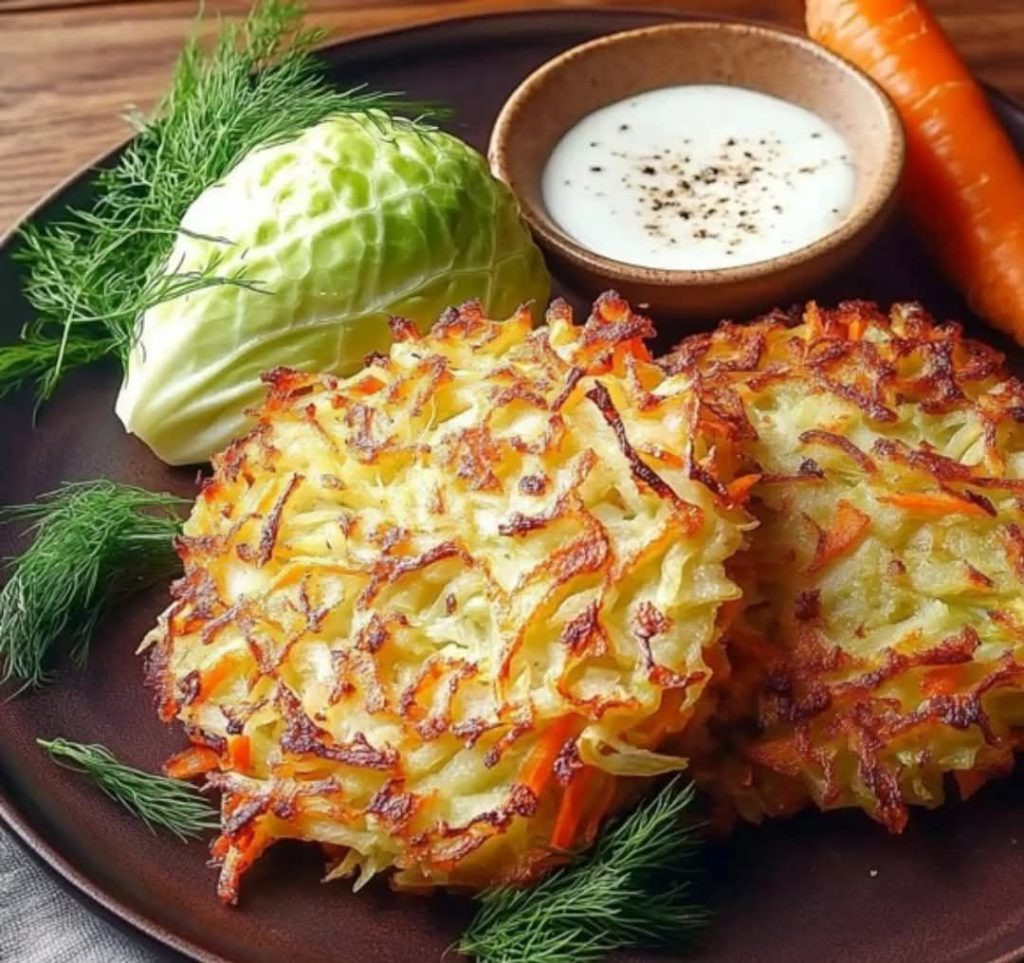 Placki z młodej kapusty z koperkiem i sosem czosnkowym