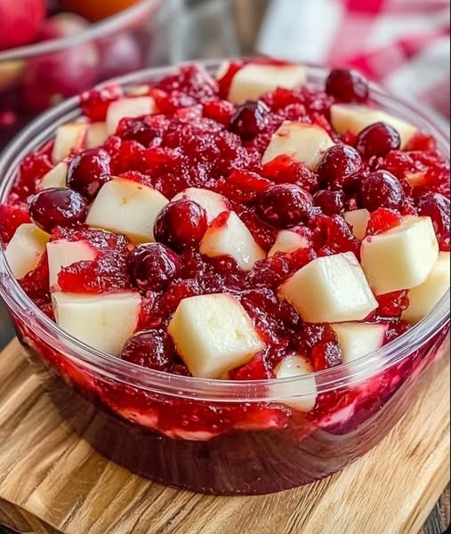 Sałatka z galaretką żurawinowo-jabłkową to klasyczne świąteczne danie, które łączy żurawinę, jabłka i rozgnieciony ananas w pięknej foremce z galaretką. Jest słodka, kwaśna i cudownie chrupiąca dzięki świeżym jabłkom i posiekanym orzechom. Ta sałatka z galaretką jest idealna na Święto Dziękczynienia, Boże Narodzenie lub inne świąteczne spotkania i doskonale komponuje się z wytrawnymi daniami, takimi jak indyk czy szynka.