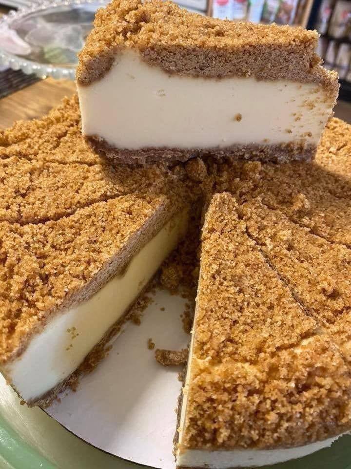 Zacznij od przygotowania ciasta na spód. Połącz składniki, aż wszystkie okruszki równomiernie pokryją się masłem. Wsyp połowę na dno tortownicy o średnicy 23 cm i ubij. Użyj dna suchej miarki, aby upewnić się, że ciasto jest dobrze wymieszane – jeśli będzie zbyt luźne, po prostu się rozsypie podczas krojenia. Wstaw tortownicę do zamrażarki, aby stężała, a drugą połowę ciasta odłóż na blat.