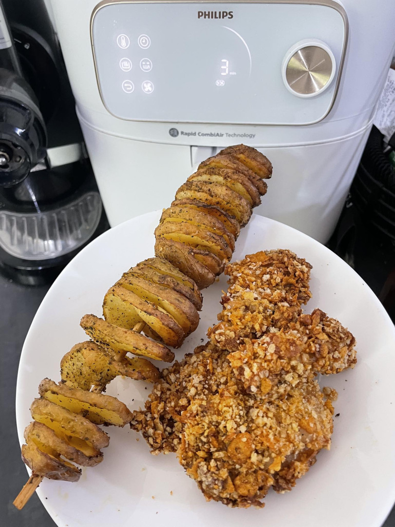 Za dzieciaka na Krupówkach albo nad Bałtykiem najbardziej polowałem na długie spiralne ziemniaki na patyku. Dlaczego by nie zrobić takiego w domu? Składniki mam, wykonanie banalnie proste, a patrząc na aktualne ceny w budkach na deptakach to w dodatku zaoszczędzam małą fortunę. Wiadomo, samym ziemniakiem się chłop nie naje (chociaż mógłbym przygotować takich i cały wór), więc zrobiłem do nich chrupiące nuggetsy. I teraz mogę poczuć się jak w nadmorskim (smacznym!) fast foodzie😃
