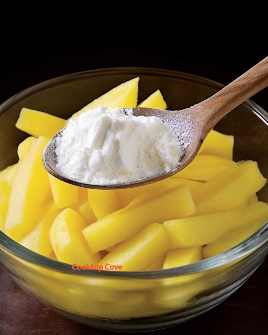 After soaking, dry the strips thoroughly with a clean cloth. Any remaining moisture can prevent the fries from becoming crispy.