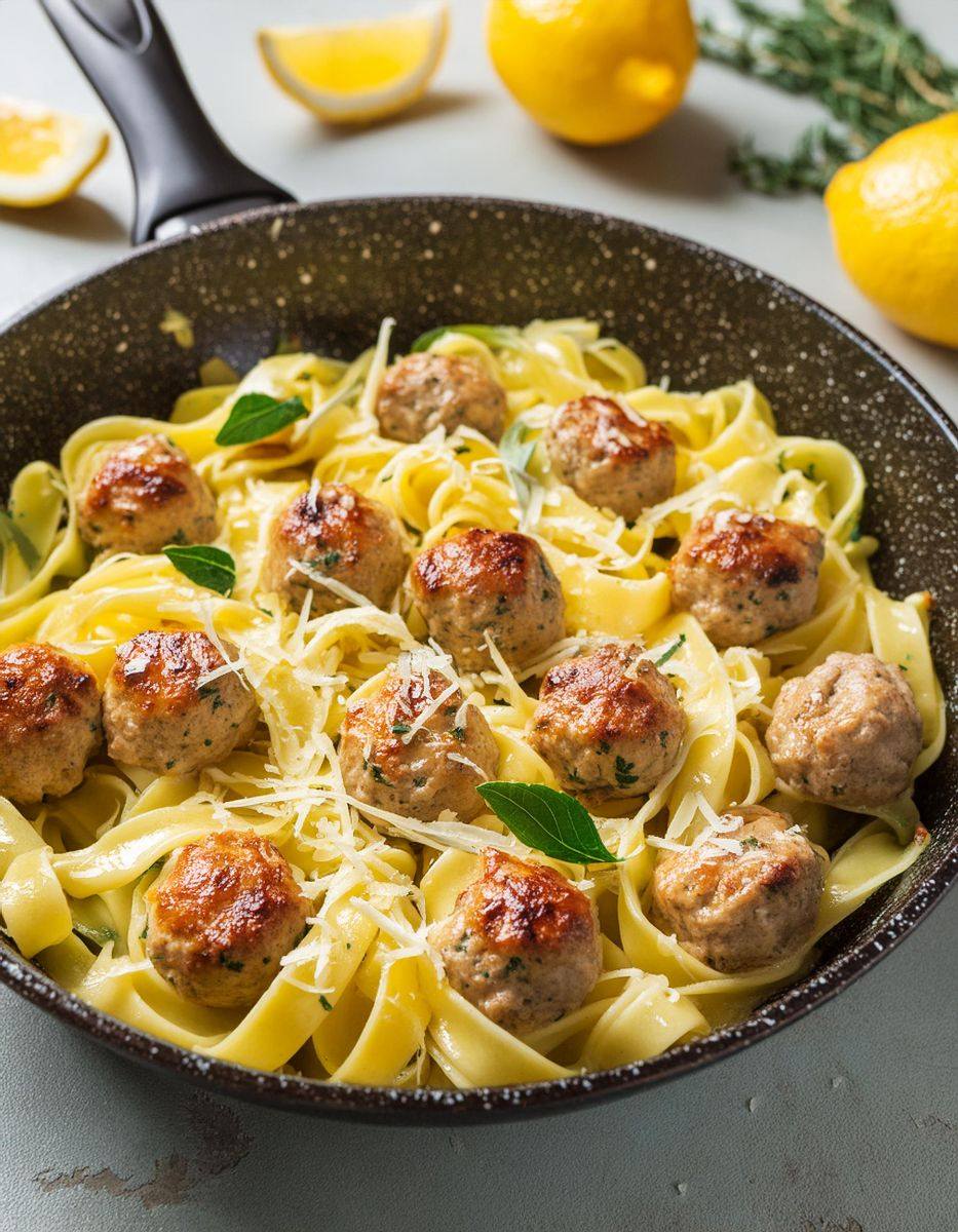 Lekki szwedzki makaron z klopsikami cytrynowymi