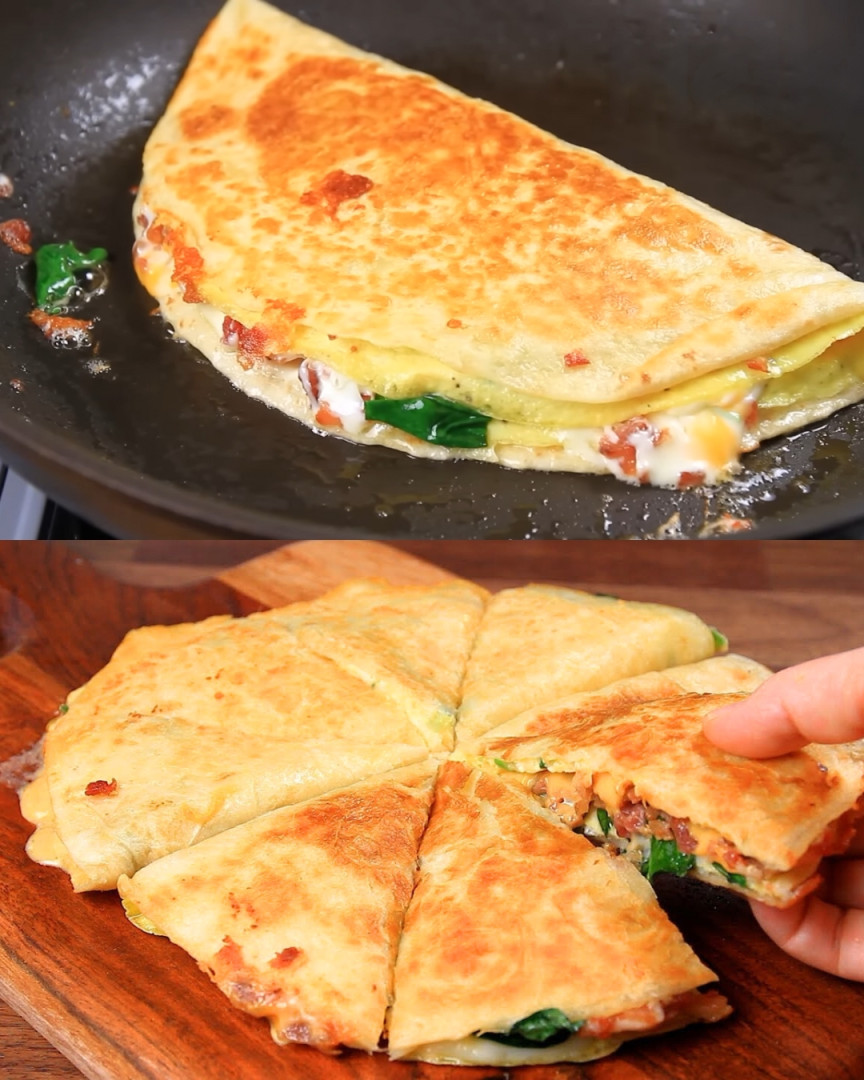 Te pyszne śniadaniowe tortille z jajkiem i serem są idealne na szybki i sycący posiłek poranny. Te tortille wypełnione jajecznicą, bekonem, szpinakiem i rozpływającym się serem z pewnością staną się ulubionym śniadaniem.