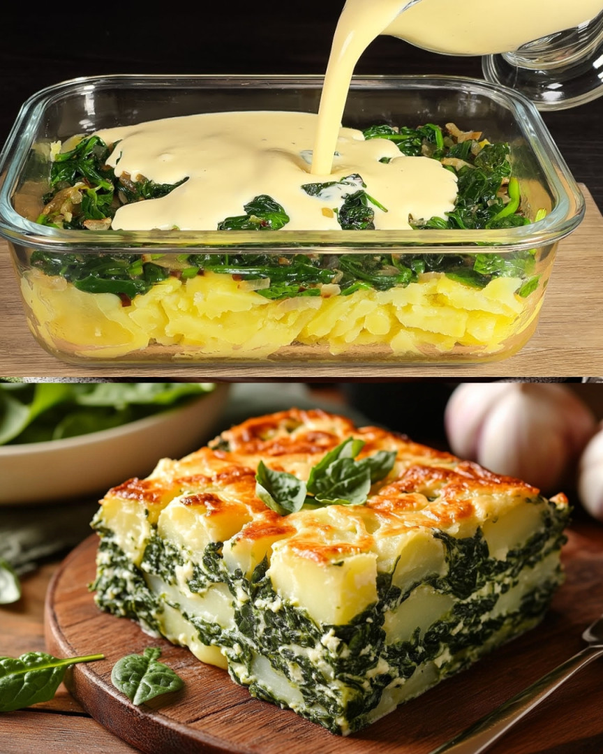 Ta rozgrzewająca zapiekanka łączy w sobie delikatne ziemniaki, podsmażony szpinak oraz kremową mieszankę jajek i sera, dzięki czemu jest to pyszne i pożywne danie na każdą okazję.